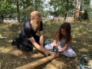Vi höll till på Mötesplats Emmaboda i Emmaboda Folkets hus. Mötesplats Emmaboda är en mötesplats för alla i Emmaboda där det finns möjligheter till både schemalagda aktiviteter och spontan verksamhet. Utanför Folkets hus fick vi också tillgång till att arbeta i en park där det fanns en önskan från Emmaboda konstförening och kommunen att det skulle skapas ett verk som skulle få stå kvar fram till skolstarten i augusti.