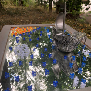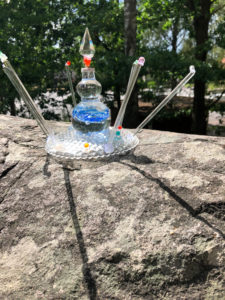 Utifrån loppisfynd och återvunnet material skapades skulpturer och andra objekt. Vi hade rätt så fria ramar men arbetade mycket med materialen glas och trä, detta för att lyfta fram bygdens mest kända näringsverksamheter. Vi jobbade även med att väcka idéer kring ljus och ljud i våra verk.Vad händer med glas och prismor när vi tar materialen utomhus? Kan vi få våra skulpturer att låta med hjälp av vinden?