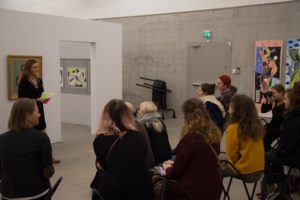 De har arbetat med demokratifrågorna i skolan och använder sedan bland annat konstmuseet som ett förlängt klassrum för att vidga frågan än mer och hitta nya ingångar. Jag som konst- och museipedagog får göra mitt bästa för att använda den konstutställning som finns att visa vid tillfället, för det syfte de är här för.