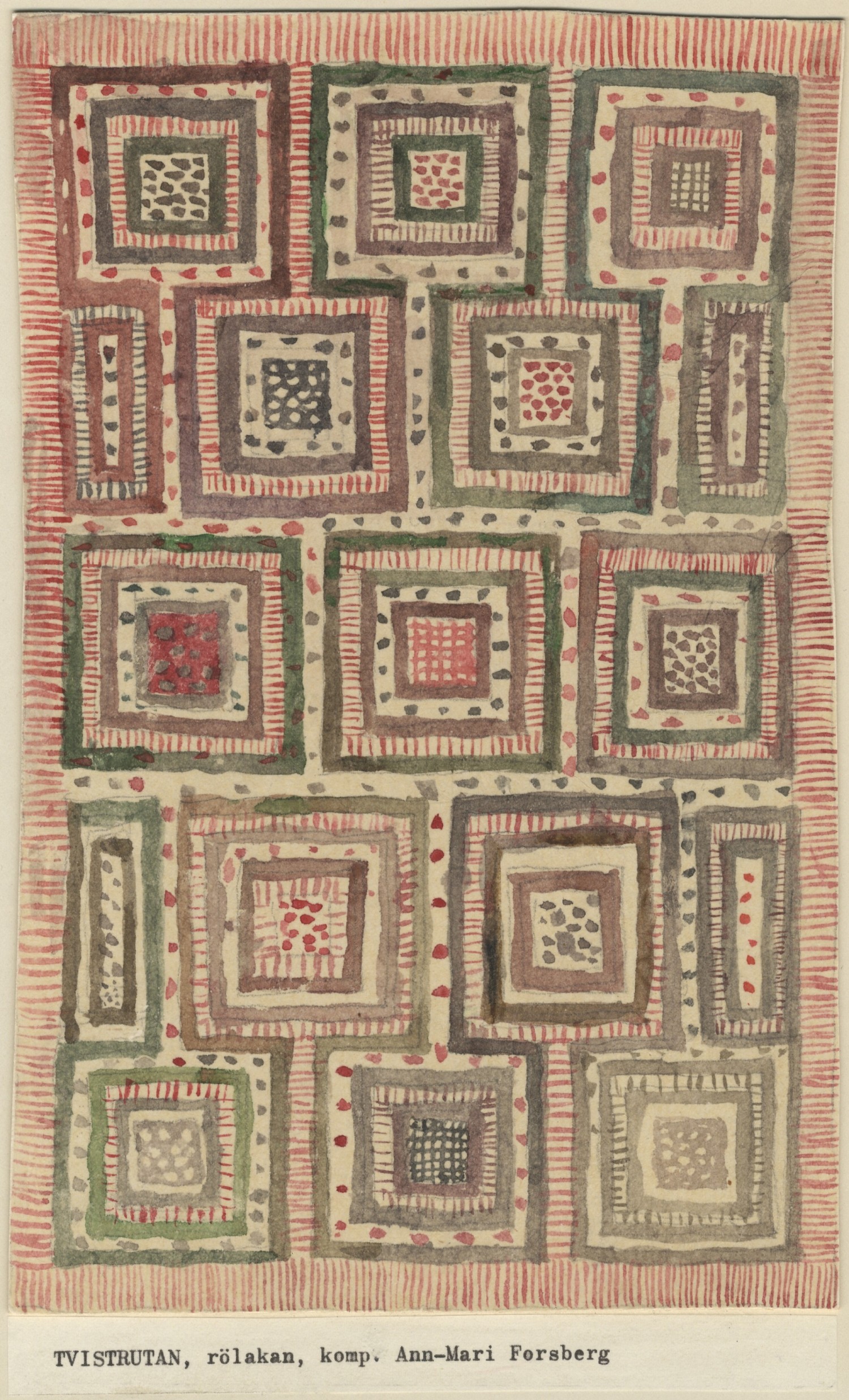 På HKS studerade man textil från olika tider och kulturer; även svensk allmogetextil. En viktig kunskapsbank var den inventering av svensk allmogetextil som genomförts av Lilly Zickerman, grundaren av Föreningen för svensk Hemslöjd, i början av seklet. På skolan hade man tillgång till 2400 avbildningar av dessa textiler, vilka gjorde stort intryck på Ann-Marie. Samtidigt inspirerande Barbro Nilsson, med sin undervisning, Ann-Marie att söka sig mot en modernare uttryck.