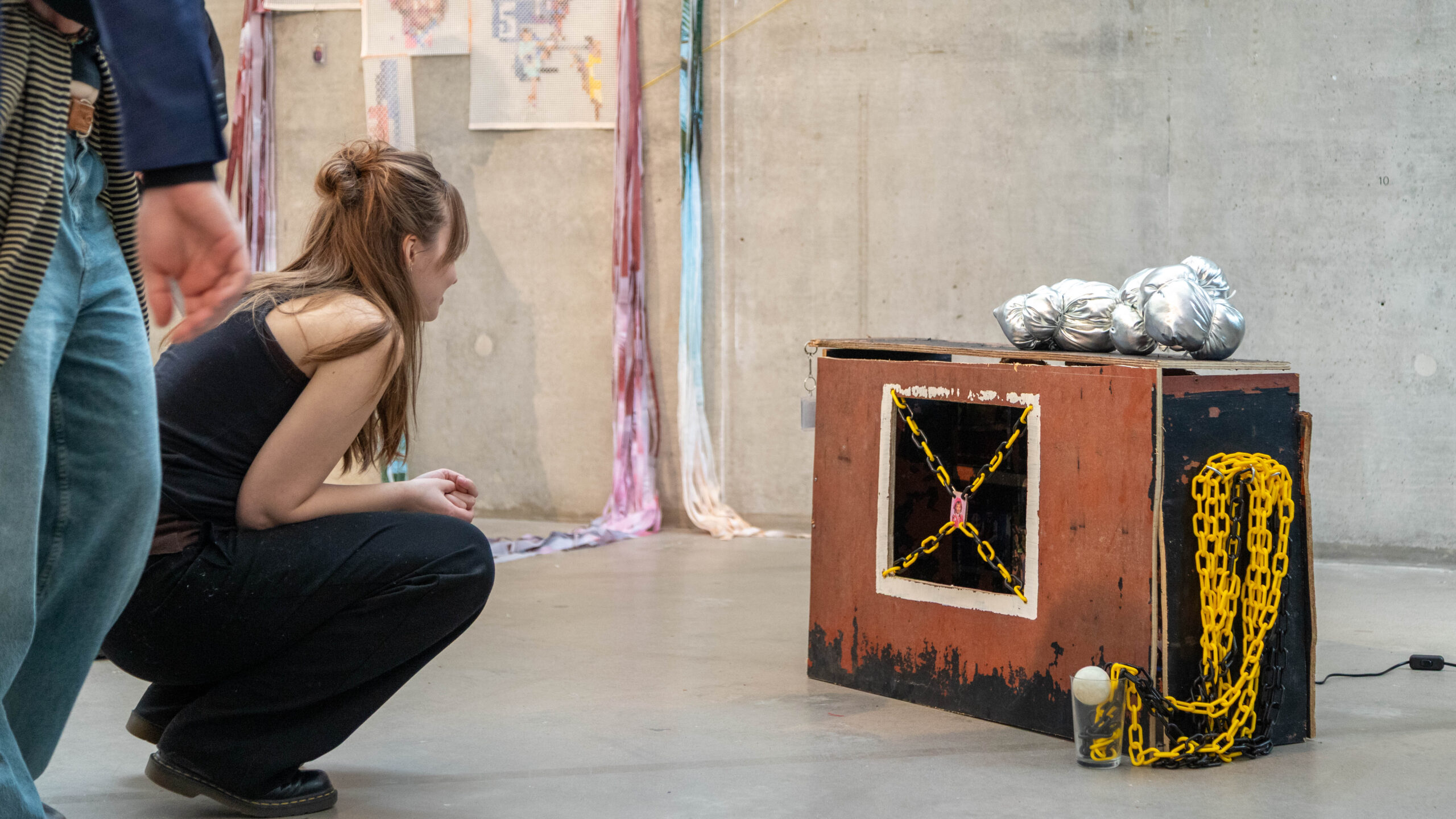 Är du nyfiken på framtidens konstnärer? Lördag 25 april är konstnärerna från Konstskolan II, Ölands folkhögskola, på plats i utställningen Jaga svans. Ett ypperligt tillfälle att ställa frågor, prata konst och ta del av konstnärernas personliga processer och metoder. Dessutom läser Milly Sundgren och Malva Skördemo upp texter utifrån sina verk klockan 11:30.